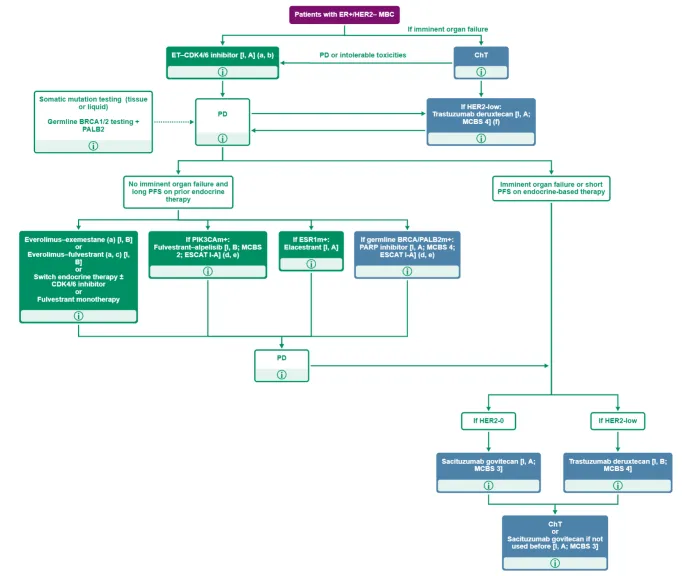图1.ESMO指南对ER+/HER2-mBC的治疗推荐