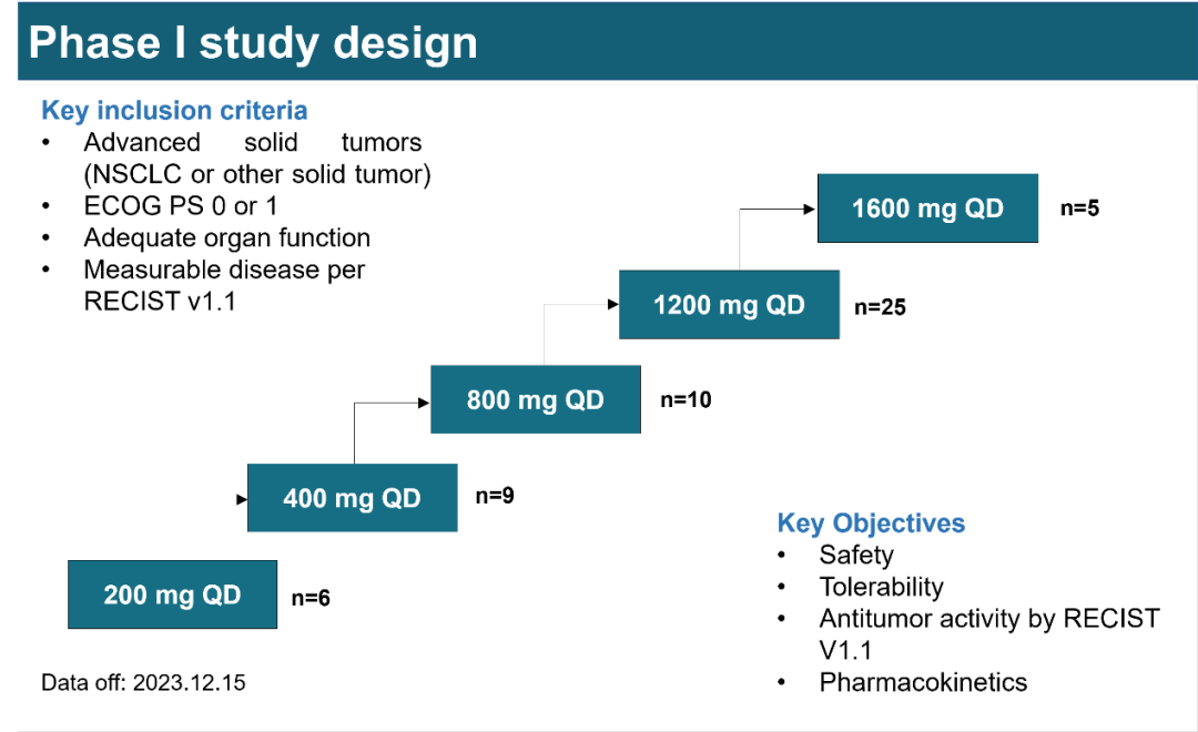 这项Ⅰ期临床研究(NCT05367778)纳入了可测量或可评估病灶的晚期或转移性实体瘤患者,入组患者接受HS-10370单药治疗(200~1600 mg,QD,PO)直至疾病进展、无法耐受或撤回知情同意。研究将采取剂量递增模式,主要研究终点为安全性和耐受性,次要研究终点为PK和疗效。具体研究设计如下图1所示: