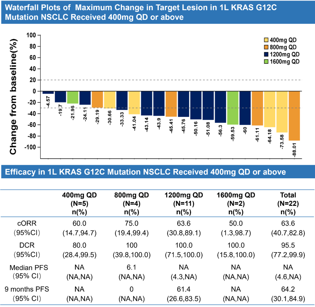 5例入组的KRAS G12C突变的经治的结直肠癌中有3例PR,1例KRAS G12C突变的标注治疗进展胰腺癌获得PR。