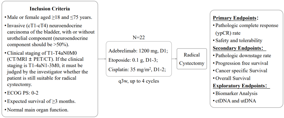 RJBLC-NEBC001:A prospective,single-arm study on neoadjuvant adebrelimab plus etoposide and cisplatin in neuroendocrine bladder carcinoma