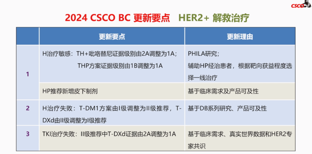《肿瘤瞭望》:请您为我们介绍一下,2024 CSCO BC指南HER2阳性晚期乳腺癌患者治疗部分进行了哪些更新?