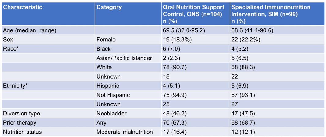 SWOG S1600是一项随机、双盲、III期试验,比较了使用特殊免疫营养(SIM)与口服营养补充(ONS)对根治性膀胱切除术(RC)后并发症的影响。SIM强化营养包括L-精氨酸、ω-3脂肪酸、膳食核苷酸等。