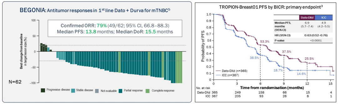 [4]Peter Schmid,et al.Datopotamab deruxtecan(Dato-DXd)+durvalumab(D)as first-line(1L)treatment for unresectable locally advanced/metastatic triple-negative breast cancer(a/mTNBC):Updated results from BEGONIA,a phase Ib/II study.Annals of Oncology(2023)34(suppl_2):S334-S390.10.1016/S0923-7534(23)01260-7