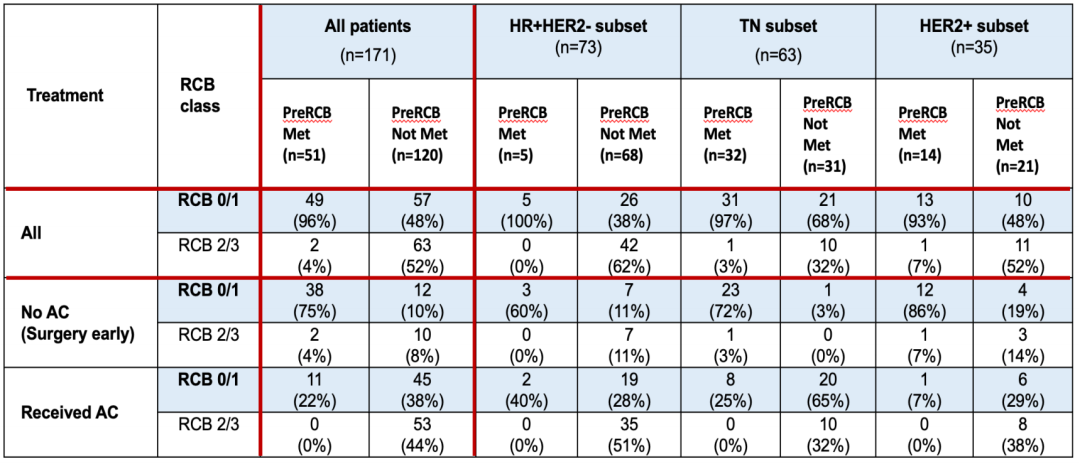 △I-SPY 2研究不同亚型和preRCB状态患者的术后RCB分级