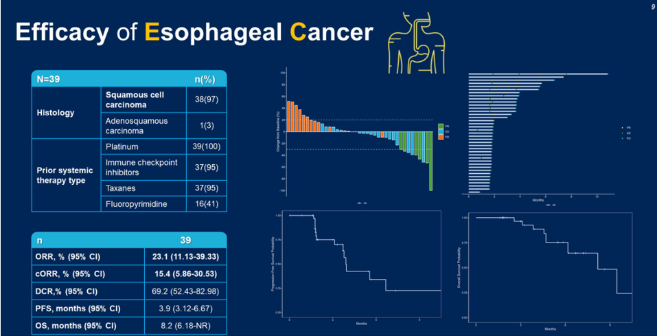 张剑教授:9MW2821药物在尿路上皮癌的治疗中已取得一定成果,并且我们已启动Ⅲ期临床研究。该研究由我们医院泌尿外科的叶定伟教授领衔,负责相应适应症的注册工作。此外,我们在宫颈癌和食管癌方面的研究也在深入进行中。值得一提的是,我们的药物已经在中国和美国食品药品监督管理局(FDA)获得突破性审评的可能性。
