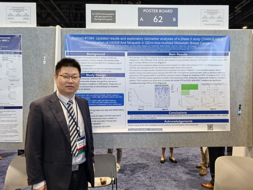 [1]Yizi Jin,et al.Results and exploratory biomarker analyses of a phase II study CHANGEABLE:Combination of HX008 and niraparib in germ-line-mutated metastatic breast cancer.ASCO 2024.Abstract 1084