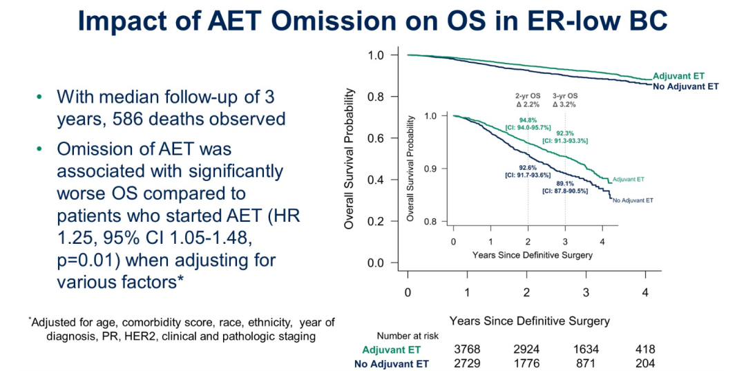 △美国NCDB回顾性研究:是否省略辅助内分泌治疗患者OS差异