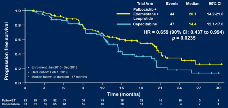 GnRH激动剂联合Palbociclib和依西美坦对比卡培他滨治疗HR+/HER2-转移性乳腺癌:随机2期Young-PEARL研究的生存结果更新
