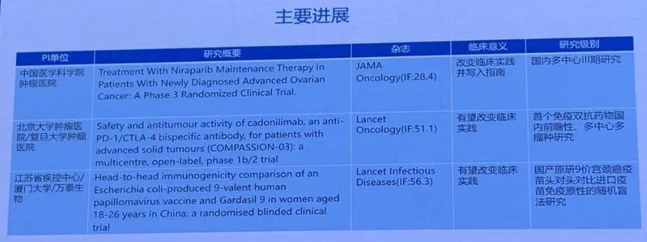 在2024年中国临床肿瘤学年度进展研讨会(BOC)暨Best of ASCO 2024 China会议上,《中国临床肿瘤学年度研究进展2023》正式发布。CSCO青委会专家针对不同瘤种领域的中国年度研究进展进行分享汇报,其中妇科肿瘤部分包含3项主要研究进展以及6项值得关注进展。