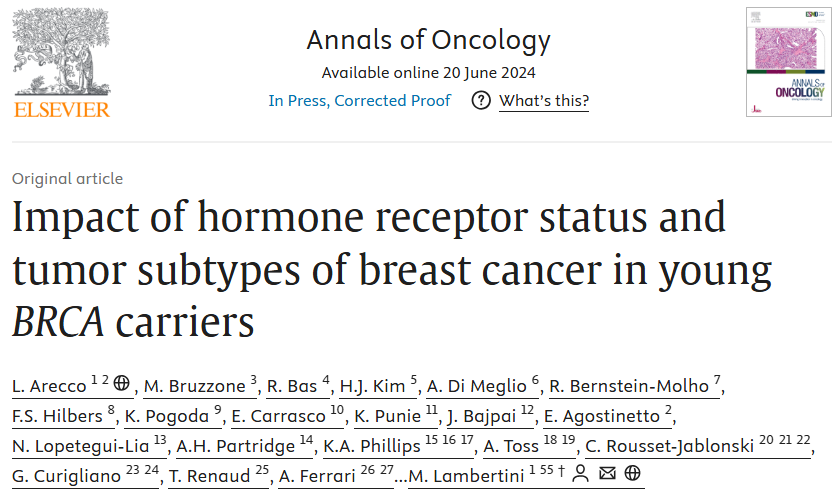 7.Arecco L,Bruzzone M,Bas R,et al.Impact of Hormone Receptor Status and Tumor Subtypes of Breast Cancer in Young BRCA Carriers[J].Annals of Oncology,2024.